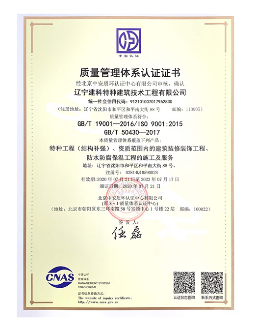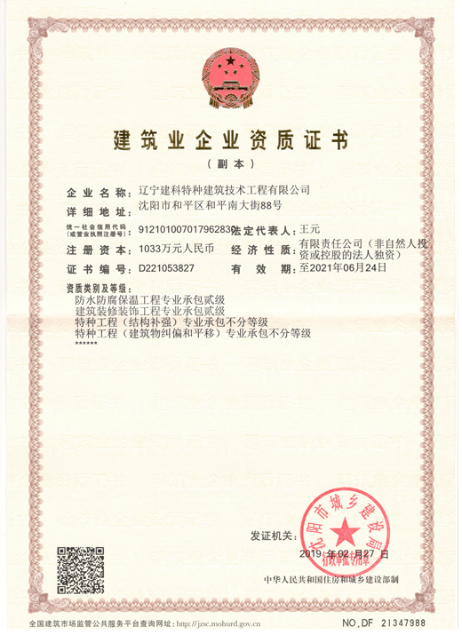 防水防腐保温建筑装饰装修工程专业承包贰级