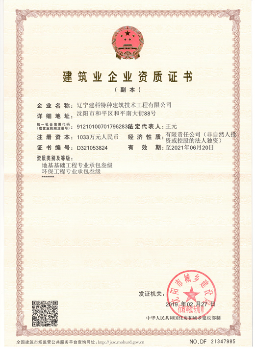 地基基础工程和环保工程专业承包叁级